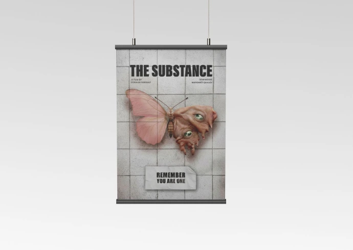 Desarrollado a partir de la metáfora visual. A través de la figura de una mariposa, se representa la dualidad y transformación de la protagonista, contrastando perfección y deformidad. El diseño combina fotografía y manipulación digital para comunicar, en una sola imagen, el conflicto interno central de la historia.